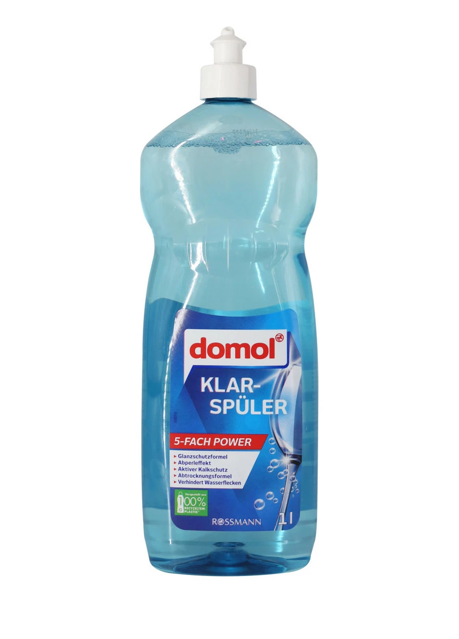 5-кратна потужність ополіскувача Domol забезпечує яскравий блиск склянок і посуду, ефективний проти водяних плям і вапняних відкладень. Формула сушіння також працює на пластиковому посуді, заощаджуючи час та сили.