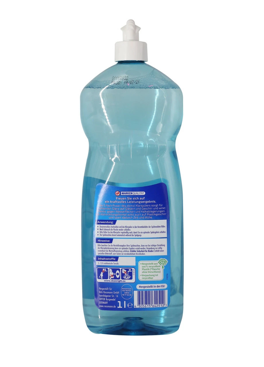 Ополіскувач Domol забезпечує неперевершений блиск посуду, запобігає утворенню плям від води та вапна. Відмінна якість доступна кожному!