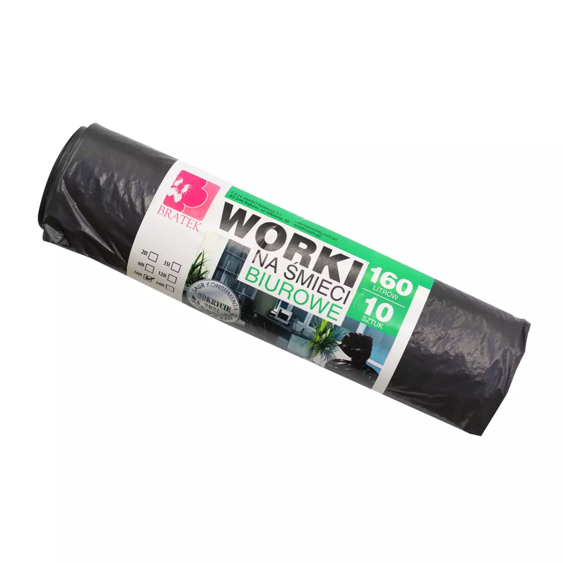 Надміцні та місткі пакети для сміття BRATEK виготовлені з міцного матеріалу, тому ви не ризикуєте порвати пакет, навіть якщо він наповнений відходами. Вони на 90% виготовлені з перероблених матеріалів. Дбайте про благо довкілля та вибирайте відповідально. 10 штук надміцних мішків ємністю 160 л. Чорні класичні пакети ідеально підходять для всіх видів сміття.