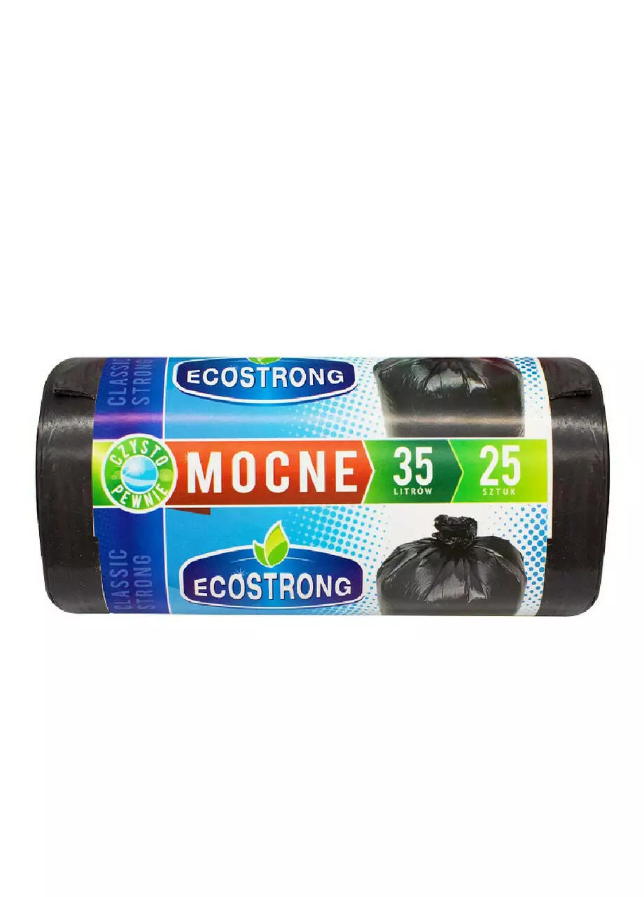 Мішки для сміття Ecostrong виконані з високоякісних матеріалів з використанням сучасних технологій. Виготовлені з одношарового поліетилену низького тиску для легкого та гострого сміття в офісах, ТЦ, організаціях.