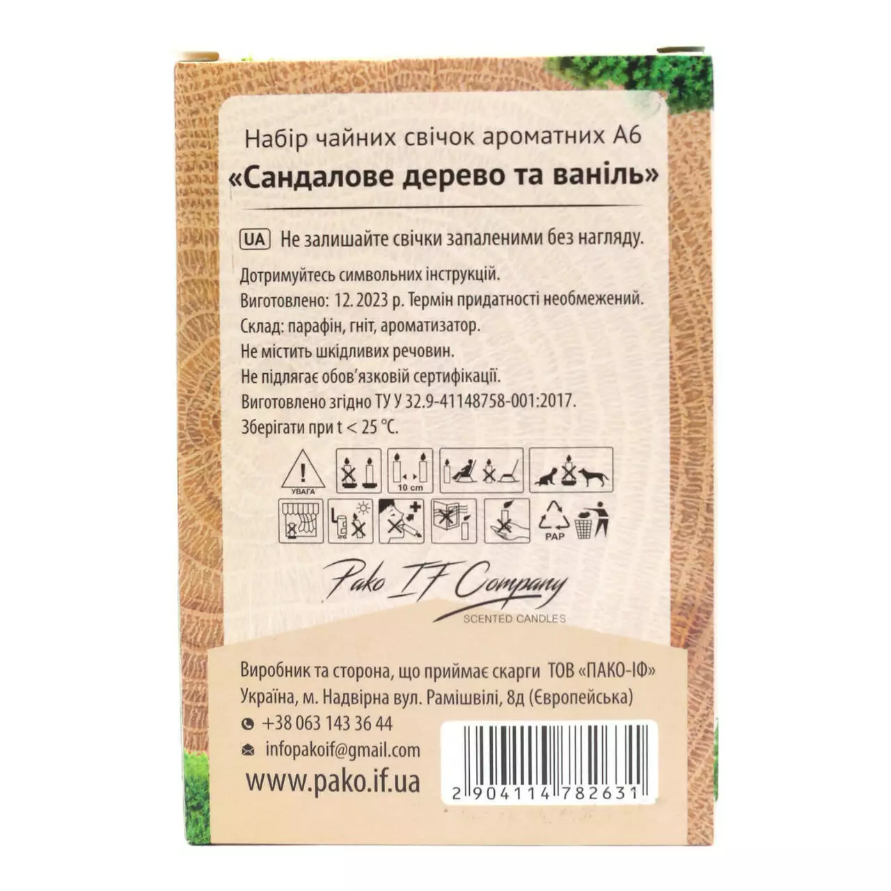 PAKO-IF Свічка-таблетка чайна ароматизована Сандалове дерево та Ваніль 6 шт