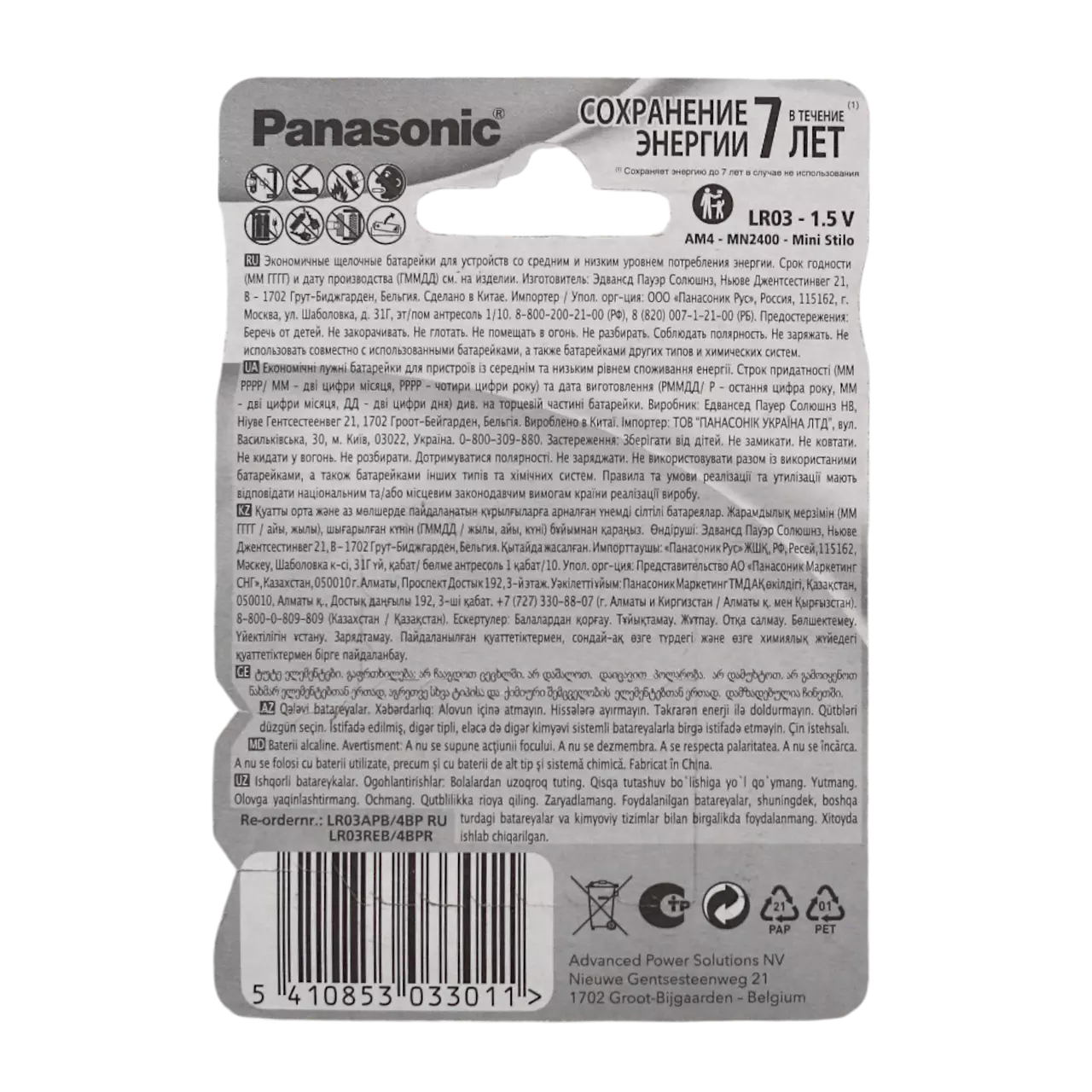Panasonic Батарейка LR03 Alkaline Power(Bronze) 4 шт