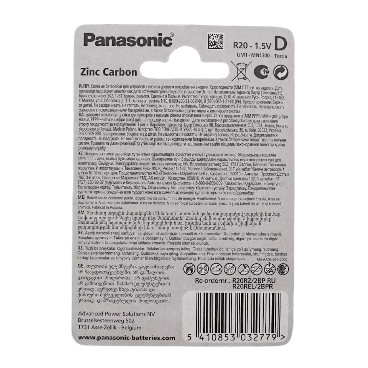Panasonic Батарейка R20 2 шт (коробка) – потужні алкалінові