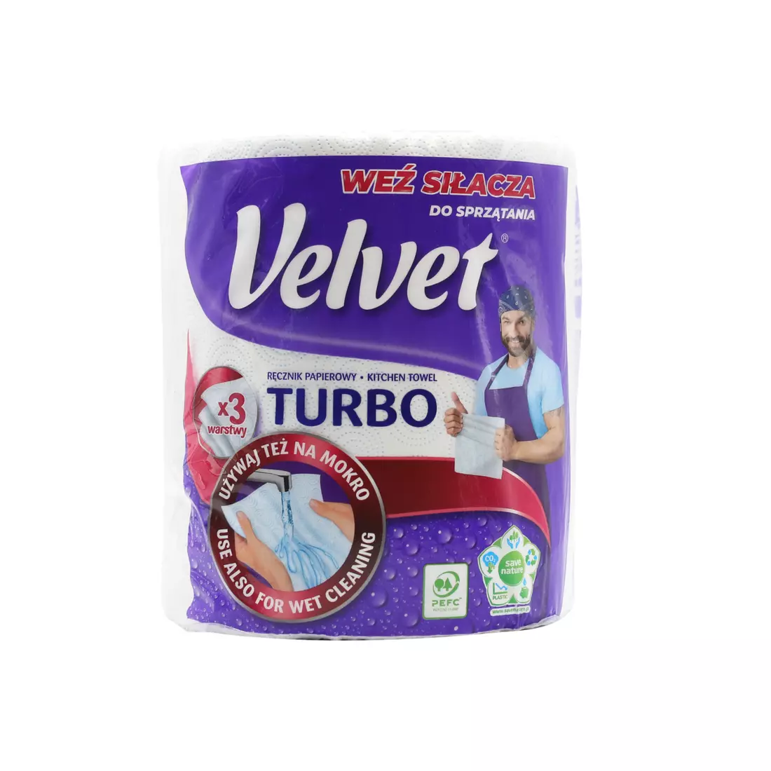 Паперові рушники Velvet Turbo - надзвичайно ефективний паперовий рушник. Його довговічність і висока ефективність допоможуть вам швидко і ефективно прибрати будь-яке приміщення у вашому домі. Щільні, і в той же час м'які, 3 шари білого паперу чудово вбирають вологу. Завдяки спеціальній технології виробництва він настільки міцний, що його можна використовувати і вологим.