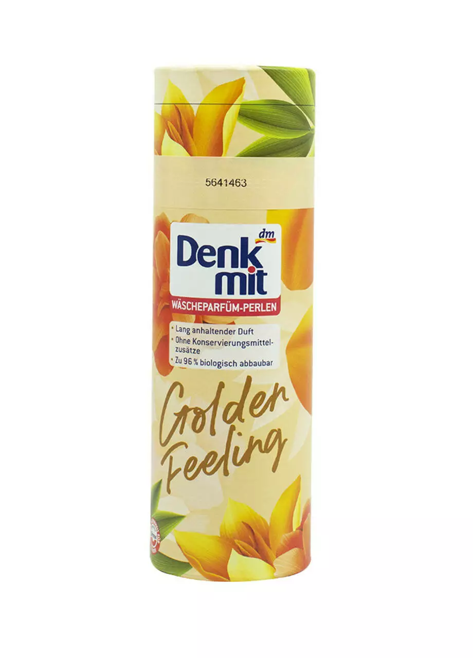 Парфумовані гранули для прання Denkmit Golden Feeling використовують в якості парфумованого кондиціонера-ополіскувача для білизни. Унікальність засобу в тому, що він має консистенцію біорозкладних парфумів-гранул, спеціально розроблених для прання білизни. Ополіскувач підходить для використання під час прання будь-якого типу одягу - від звичайних тканин до мікрофібри та спортивного одягу, дарує речам вишуканий аромат та свіжість на тривалий час.