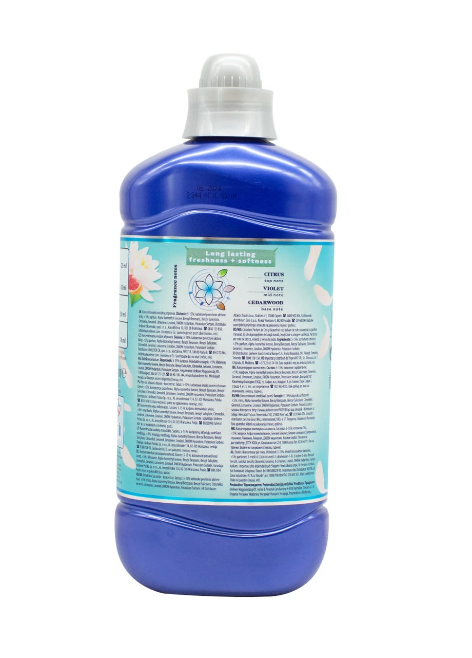 Парфумований кондиціонер для білизни Coccolino з ароматом водяної лілії та рожевого грейпфрута володіє дуже приємним, ніжним ароматом. Універсальний засіб для ополіскування, підходить для будь-яких видів тканин. Не містить фосфати і формальдегіди.