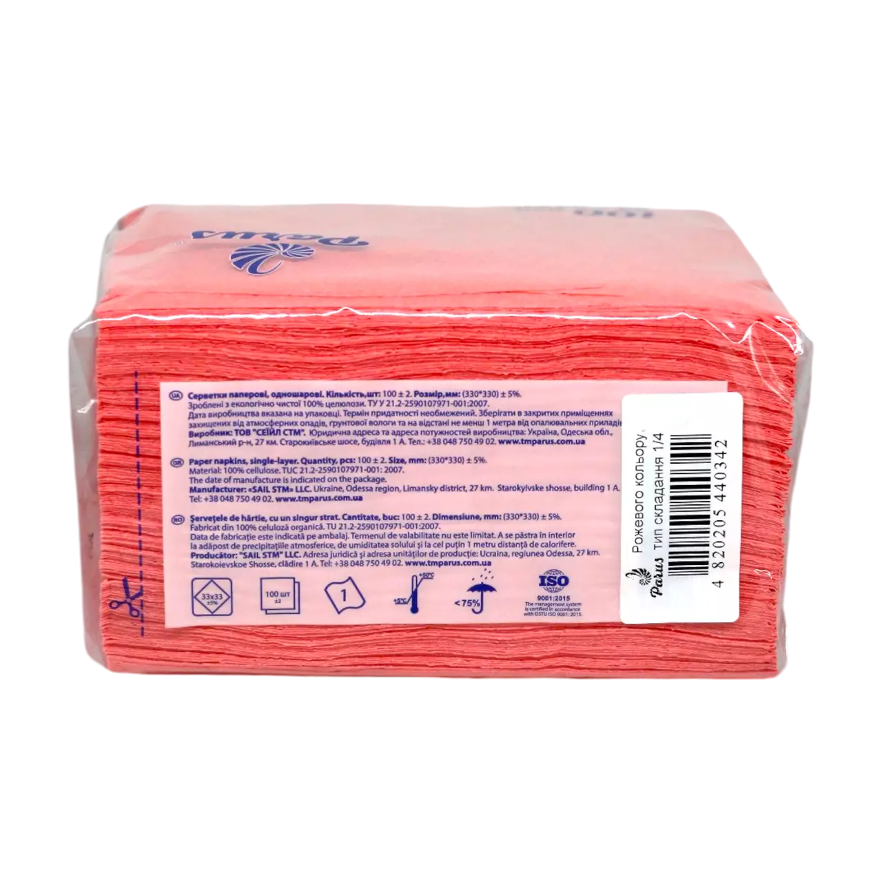 Parus Серветки паперові кольорові рожеві 33*33 см 1 шар 100 шт