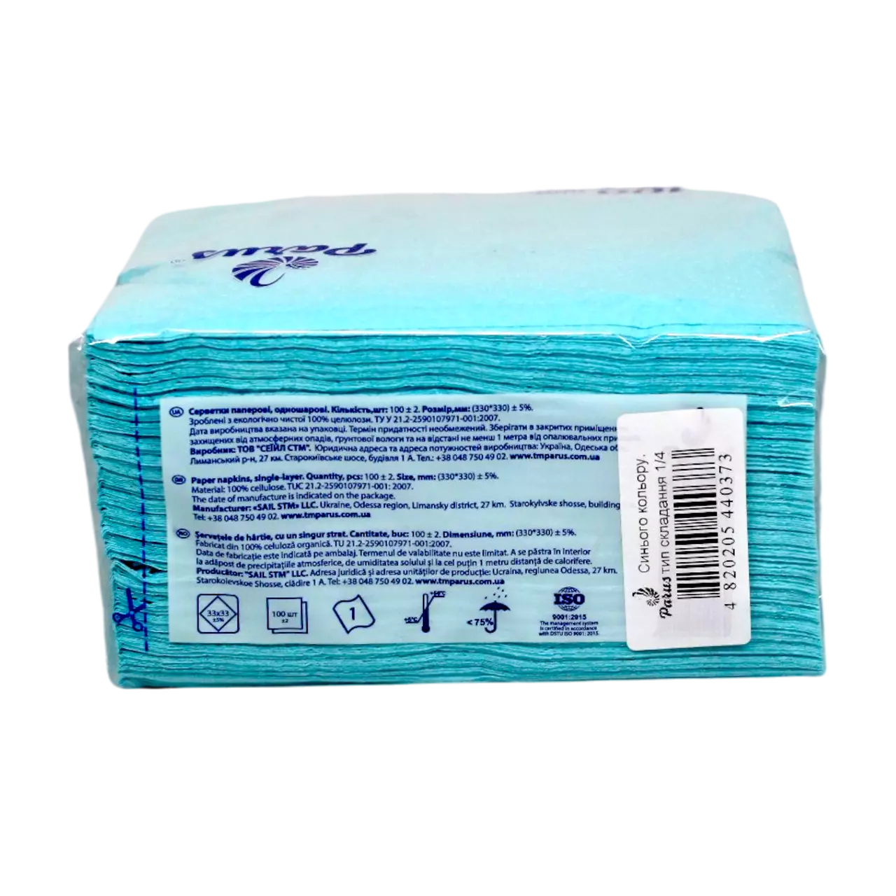 Паперові серветки Parus кольорові сині розміром 33*33 см, з одним