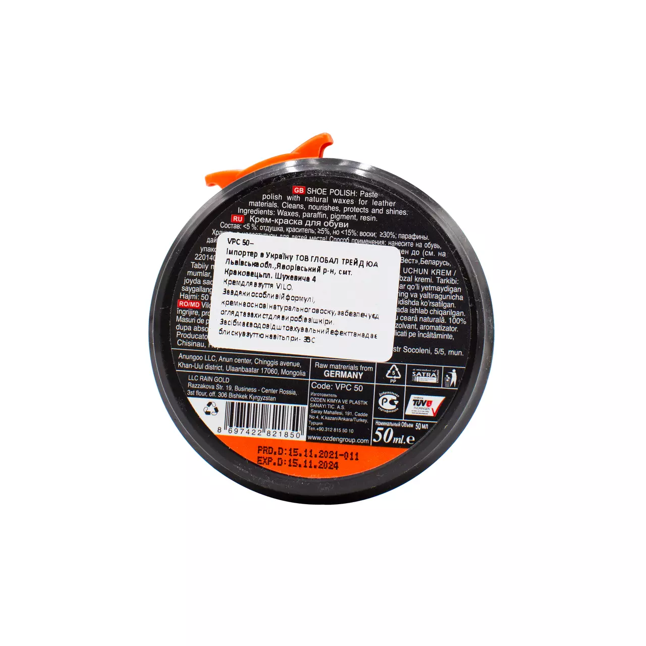 До складу крему входить натуральний бджолиний вiск, що надає додаткового блиску поверхні шкіри. Оригінальна кришка гарантує легкість відкривання банки і робить процес використання засобу акуратним. Добре замазує тріщини, оновлює і освіжає ваше взуття. Володіє вiдмiнними водо-і пиловiдштовхуючими властивостями. Підходить як для натуральної так і штучної шкіри. Крем вiдмiнно захищає взуття від вологи.