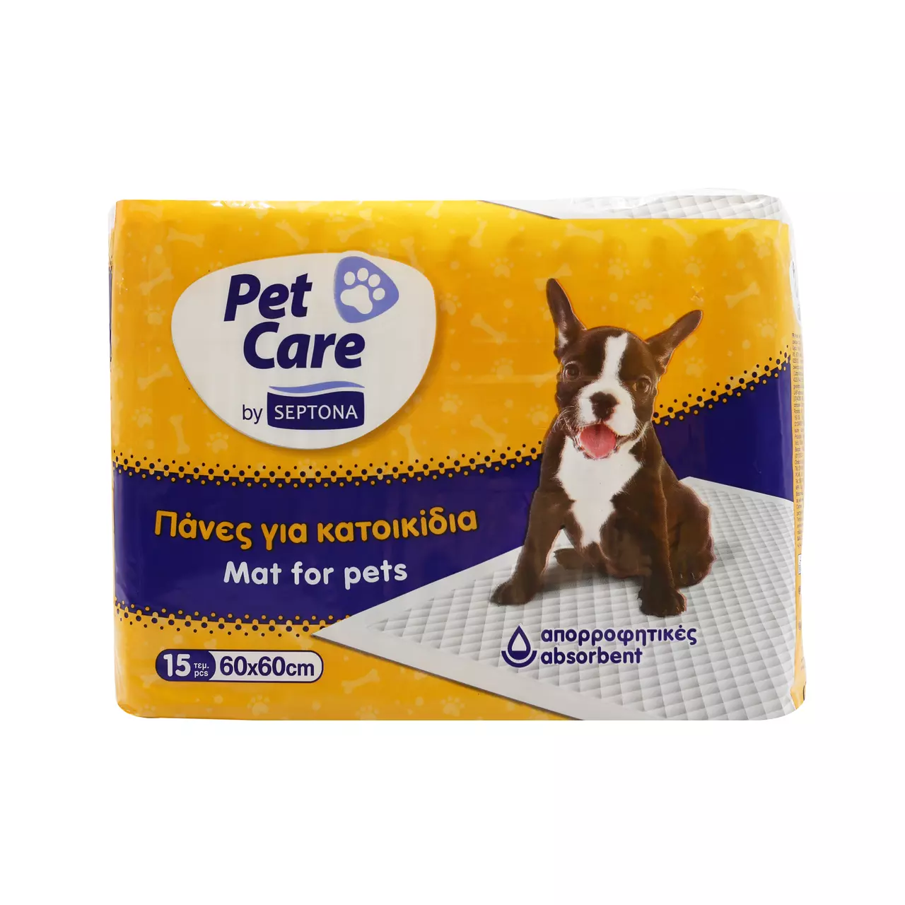 Вбираючі пелюшки для собак від Septona PET CARE. Вони мають абсорбуючий шар за технологією SAP для утримання вологи всередині, стьобаний шар для ефективної дифузії рідин і водонепроникний шар, який не ковзає.