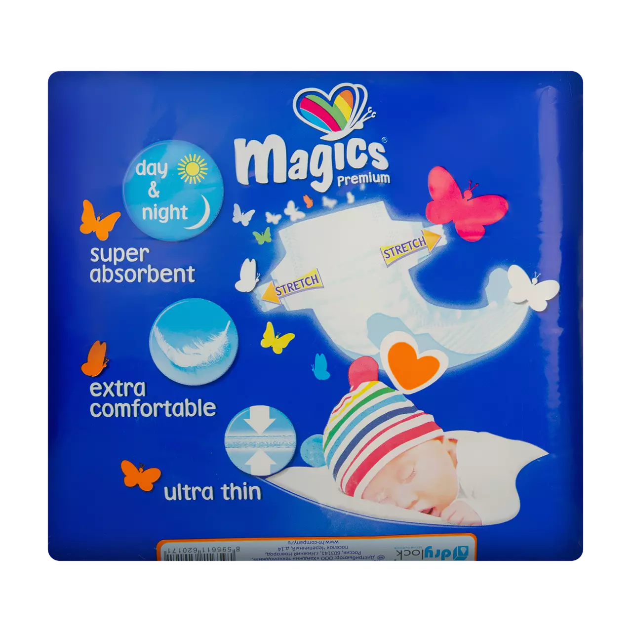Пропоновані підгузки ультратонкі. На вигляд вони нагадують білизну, виготовлену з бавовни. Вироби характеризуються унікальною розподільчою системою, яка забезпечує досить швидке поглинання вологи, що здійснюється за допомогою спеціальних каналів, а також осередків поглинаючого шару.