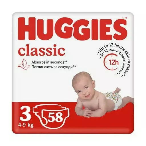 Підгузники Huggies Classic розмір 3 (4-9 кг) 58 шт є надійним