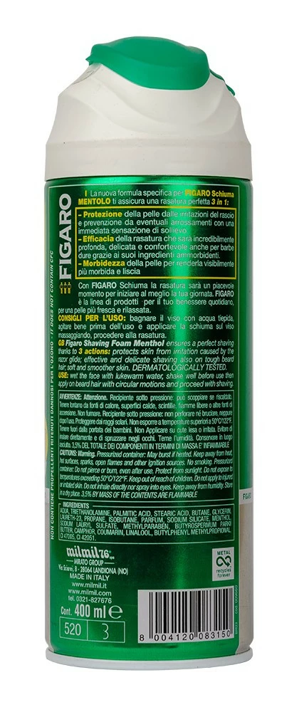 Використання піни Figaro Mentolo гарантує м'якість ковзання бритви