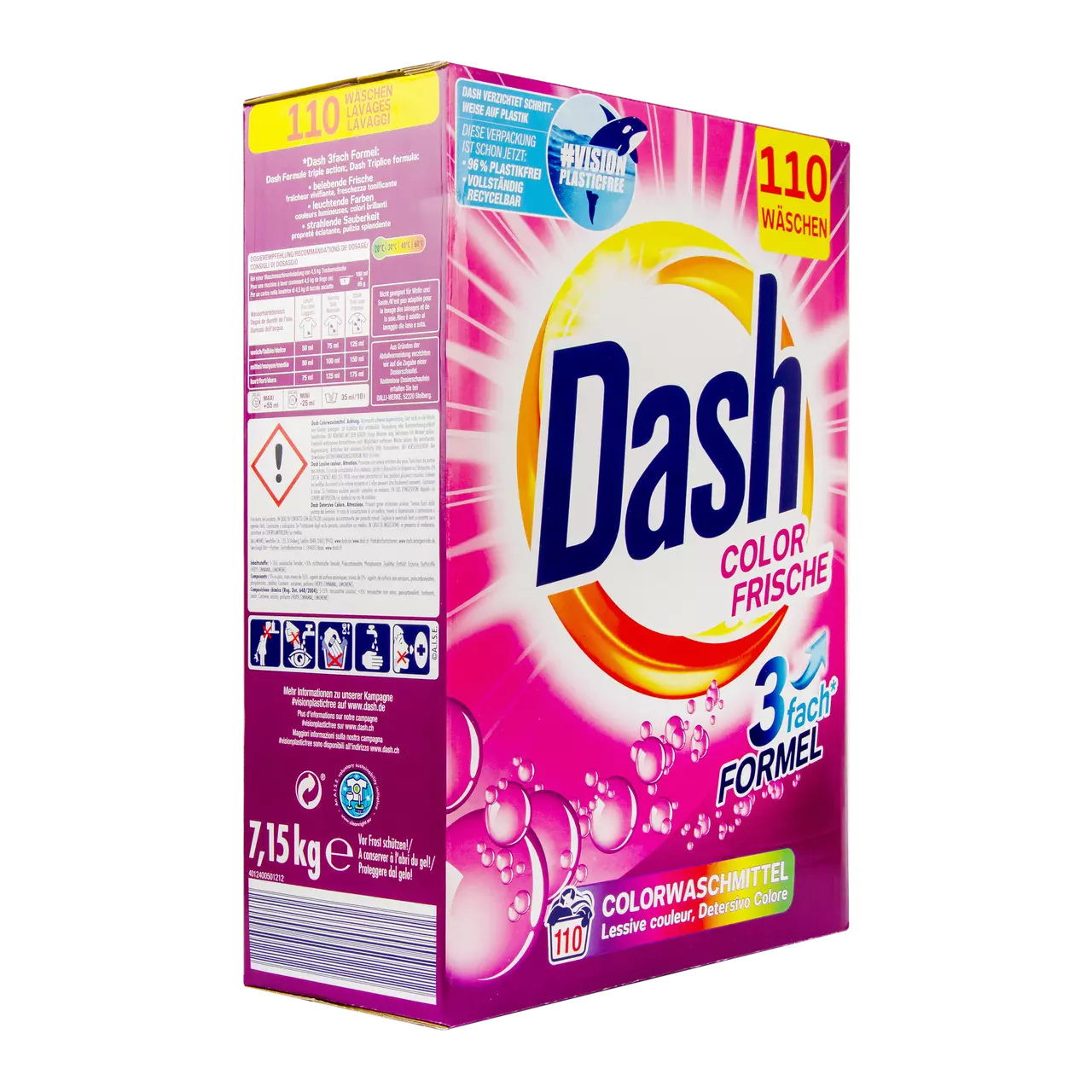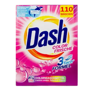 Яскравість вашої кольорової білизни зберігається навіть після багатьох прань і активно захищена від посивіння та втрати кольору. Плями надійно видаляються при першому пранні. Це робить Dash Color ідеальним порошком для вас і вашої родини. Відчуйте і насолоджуйтеся бадьорою свіжістю.