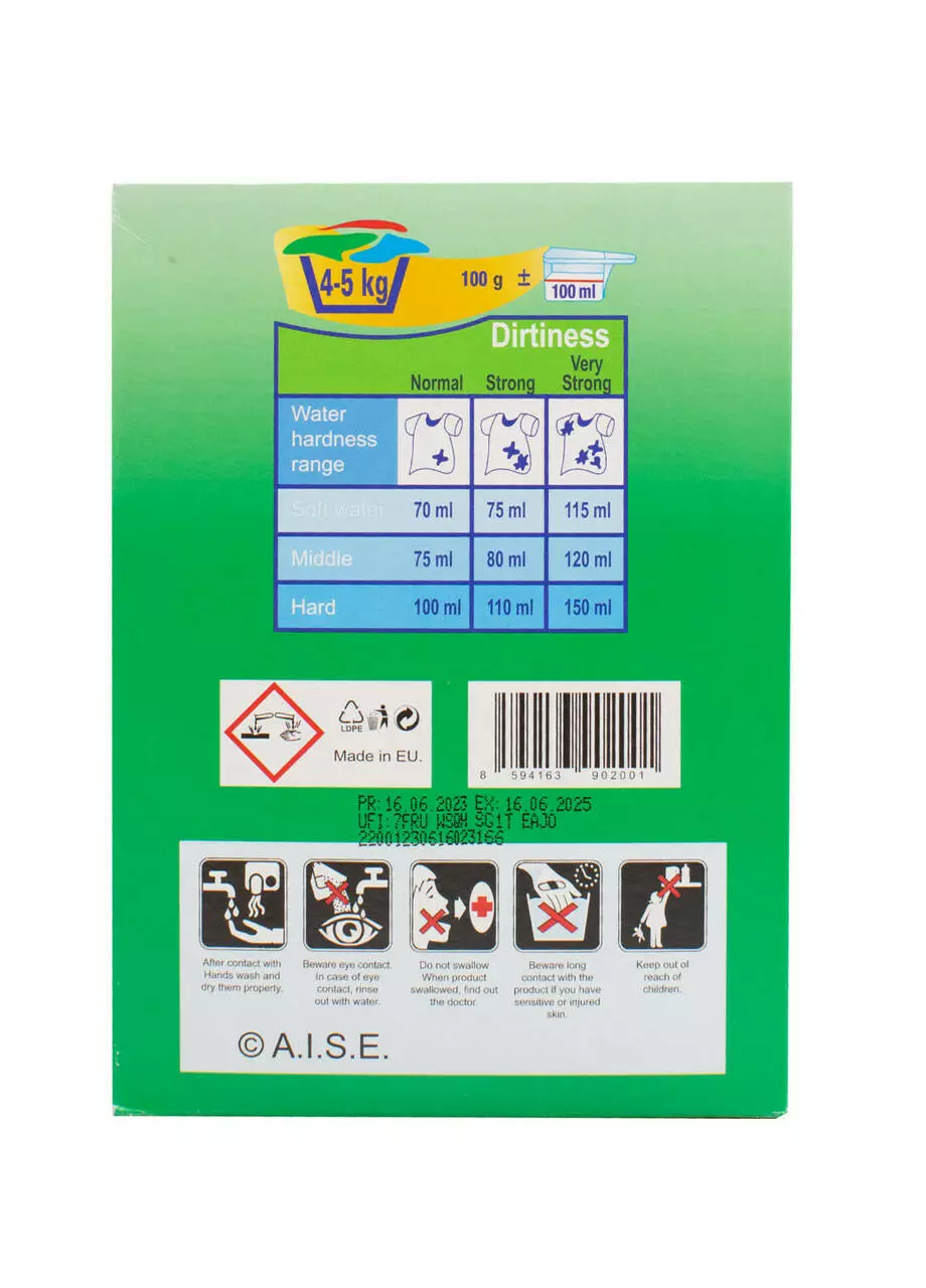 Пральний порошок придатний для прання у всіх видах пральних машин та для ручного прання. Не містить фосфатів.