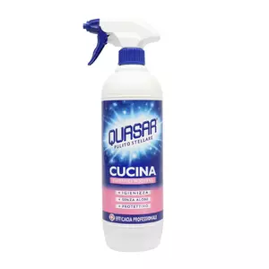 Спосіб застосування Quasar Cucina: розпиліть засіб на брудну поверхню, зачекайте кілька секунд, а потім протріть м'якою губкою або ганчіркою. Потім промийте водою і видаліть залишки засобу. Ваша кухня залишиться сяючою і чистою.