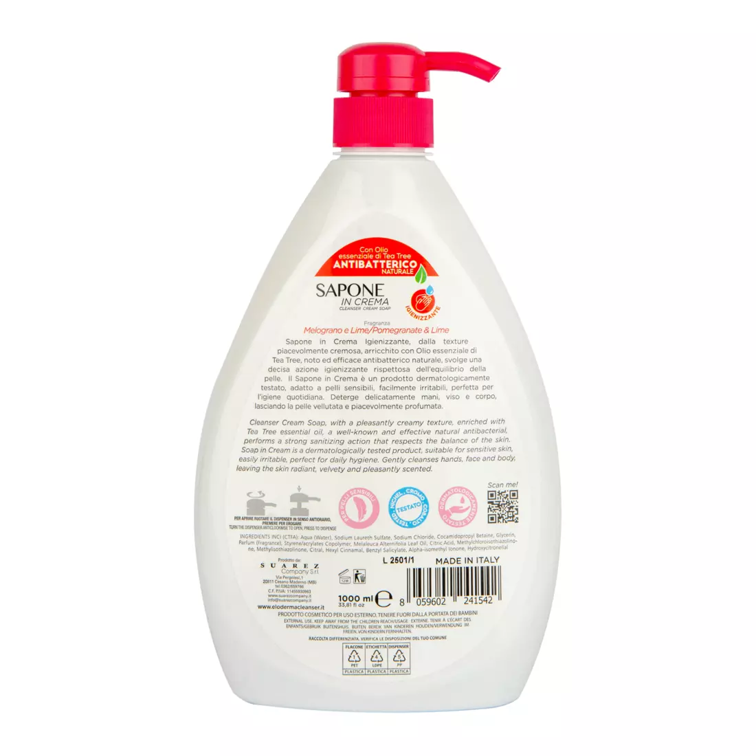 Крем-мило з приємною кремовою текстурою, збагачене ефірною олією чайного дерева, добре відомою як природний антибактеріальний засіб. Має сильну дезінфікуючу дію, дотримуючись балансу шкіри. Дерматологічно протестований продукт, підходить для чутливої шкіри. М’яко очищає руки, обличчя та тіло, роблячи шкіру сяючою, шовковистою та залишає приємний аромат.