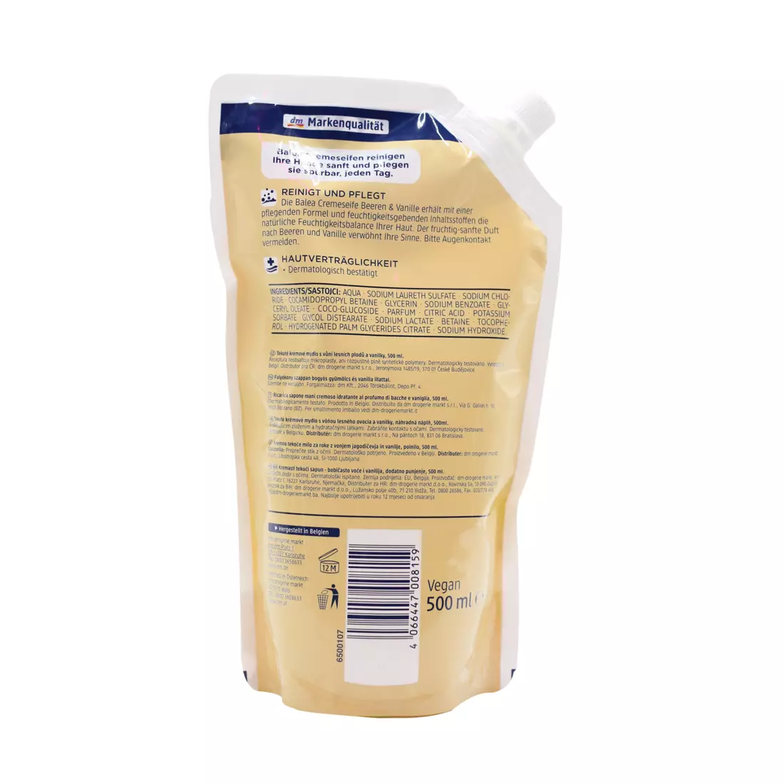 Рідке крем-мило від Balea дозволяє ретельно та дбайливо очищати шкіру. Кремова текстура також дає вам приємне відчуття на шкірі і піклується про неї при кожному митті. Але що робить це мило ще більш унікальним, так це свіжий аромат ягід та ванілі, який зачаровує ваші почуття та дарує неймовірні відчуття. Ідеальне мило для надійного очищення та гладких, м'яких рук. Склад без мікропластиків та водорозчинних суто синтетичних полімерів.