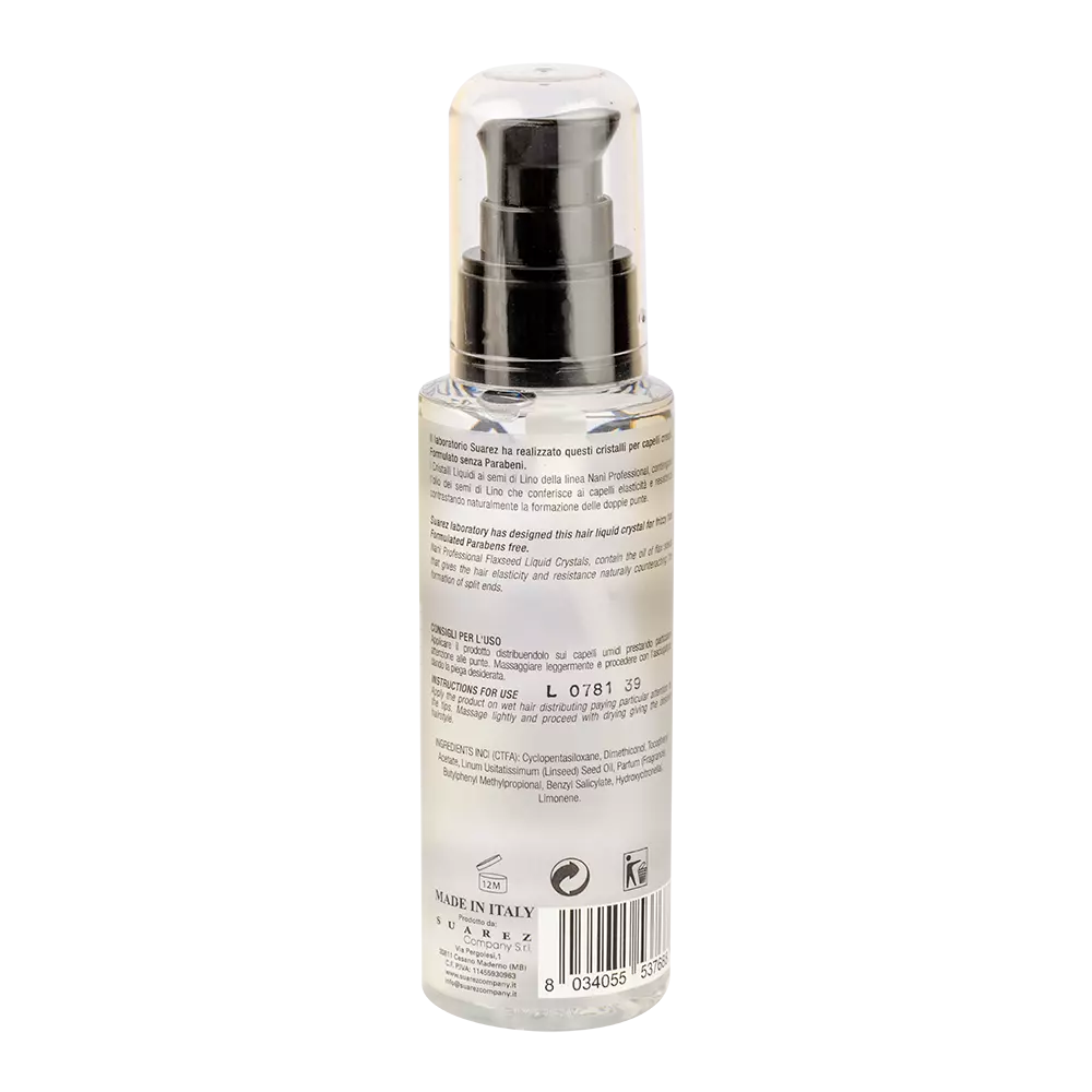 Рідкі кристали з лляною олією олією глибоко зволожують і регенерують волосся. З ефектом анти-фриз. Захищають волосся від сухості, ламкості і запобігають утворенню посічених кінчиків. Для більш вираженого ефекту рекомендується застосовувати в комплексі з шампунем і бальзамом з цієї ж серії. Підходять як для професійного, так і для домашнього догляду за волоссям.