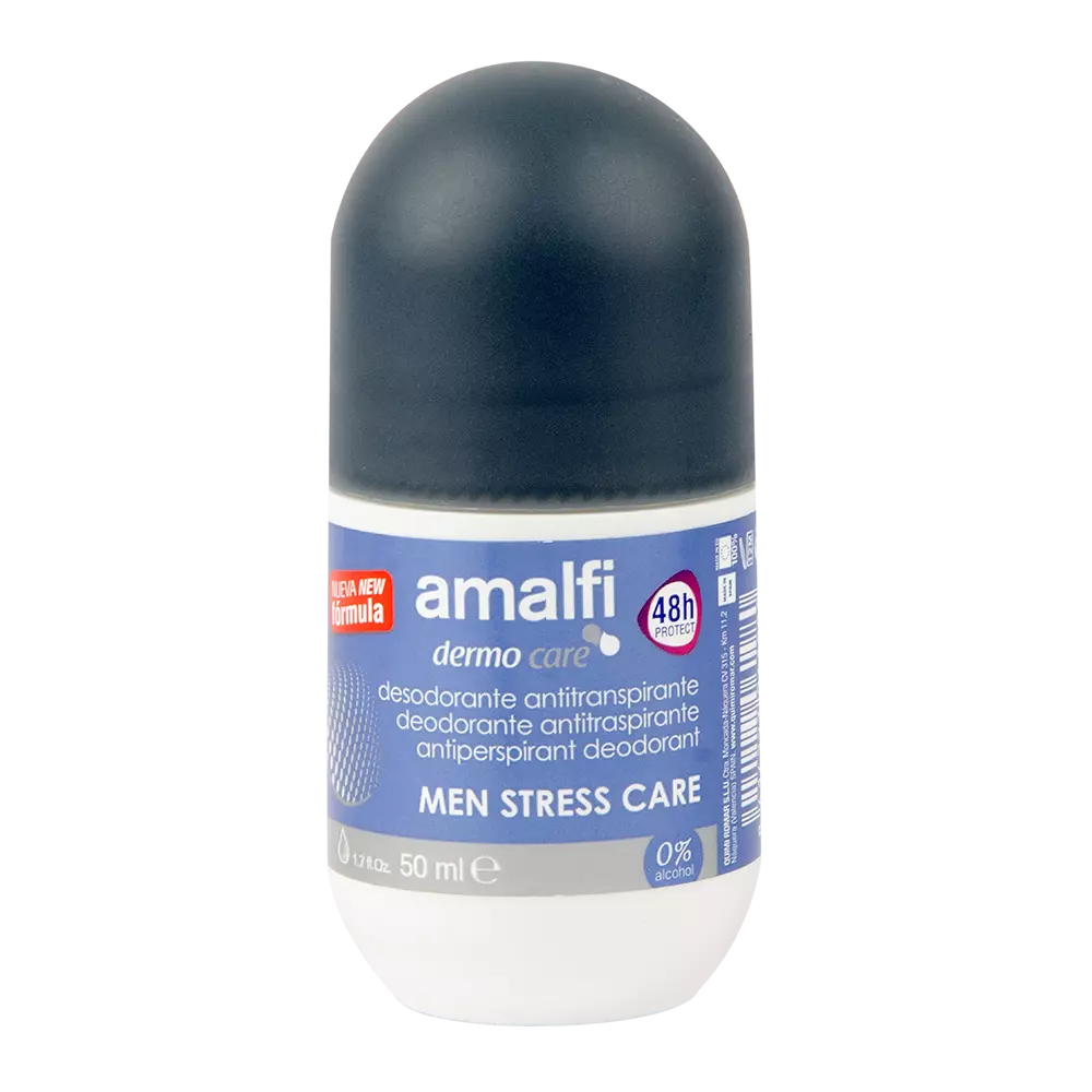 Дезодорант Amalfi Men Stress Care має приємний чоловічий аромат. Забезпечує ефективний захист від поту та запаху до 48-ми годин. Його дермозахисна формула з нейтральним ароматом піклується про чутливу шкіру пахв. Спирт 0%, триклозан 0%.