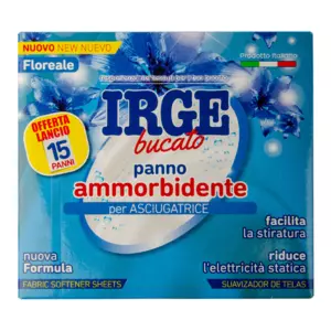 Серветка-пастка IRGE пом'якшує тканини пiд час сушіння в сушарці. Полегшує прасування. Зменшує статичну електрику.
