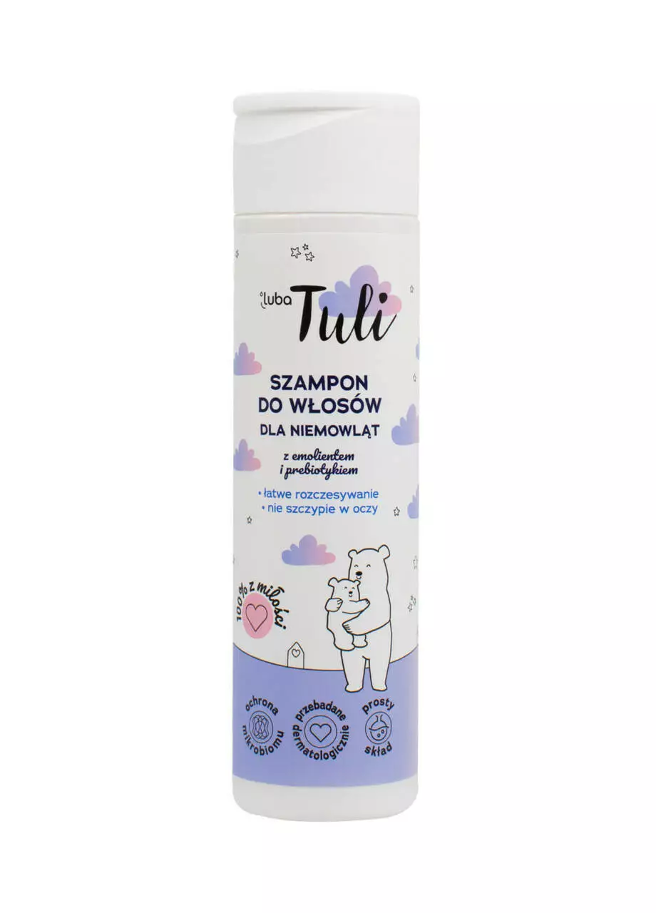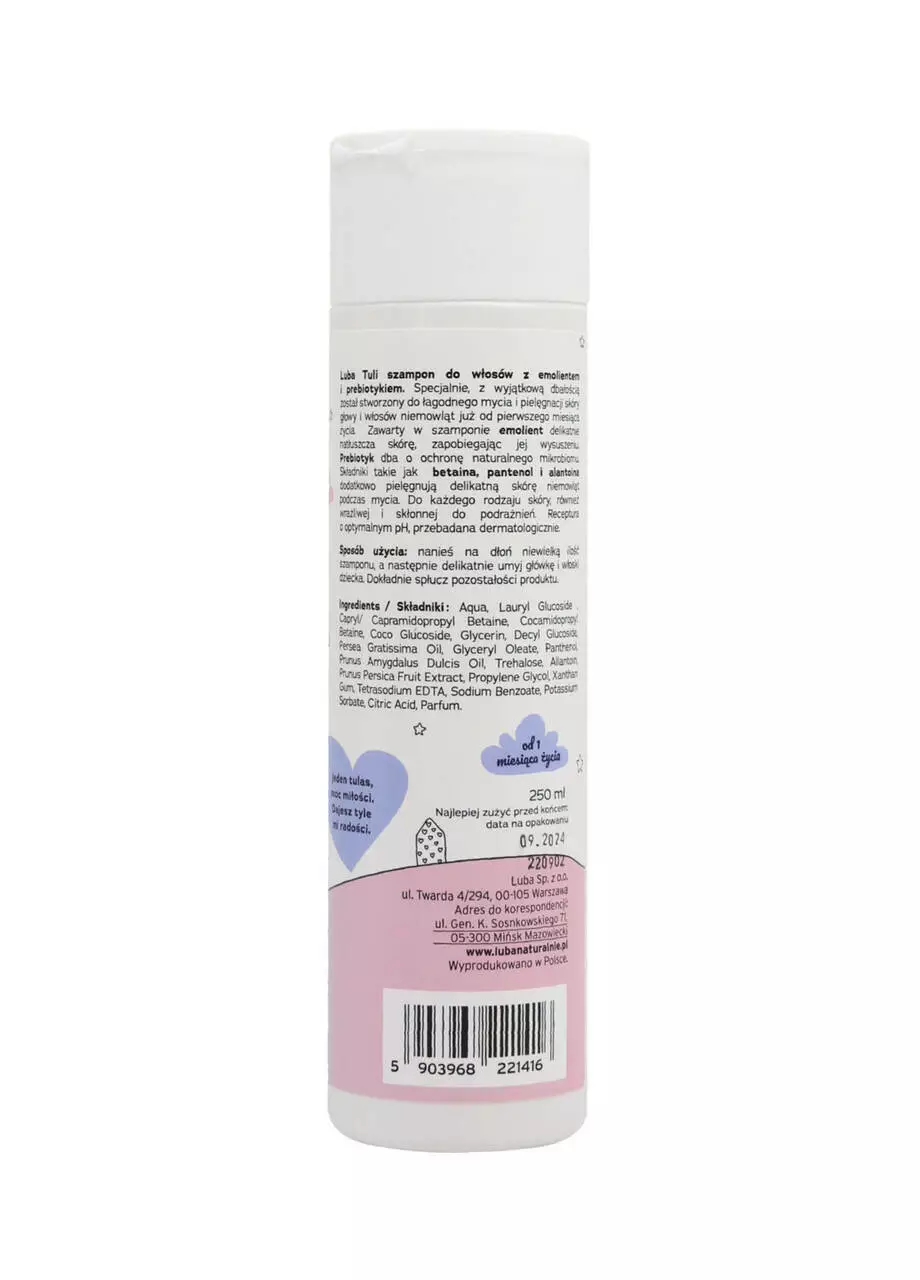 Дитячий шампунь з пом’якшувачем і пребіотиками для дітей від народження. Шампунь Luba Tuli ретельно миє дитяче волосся, робить його м’яким і запашним.