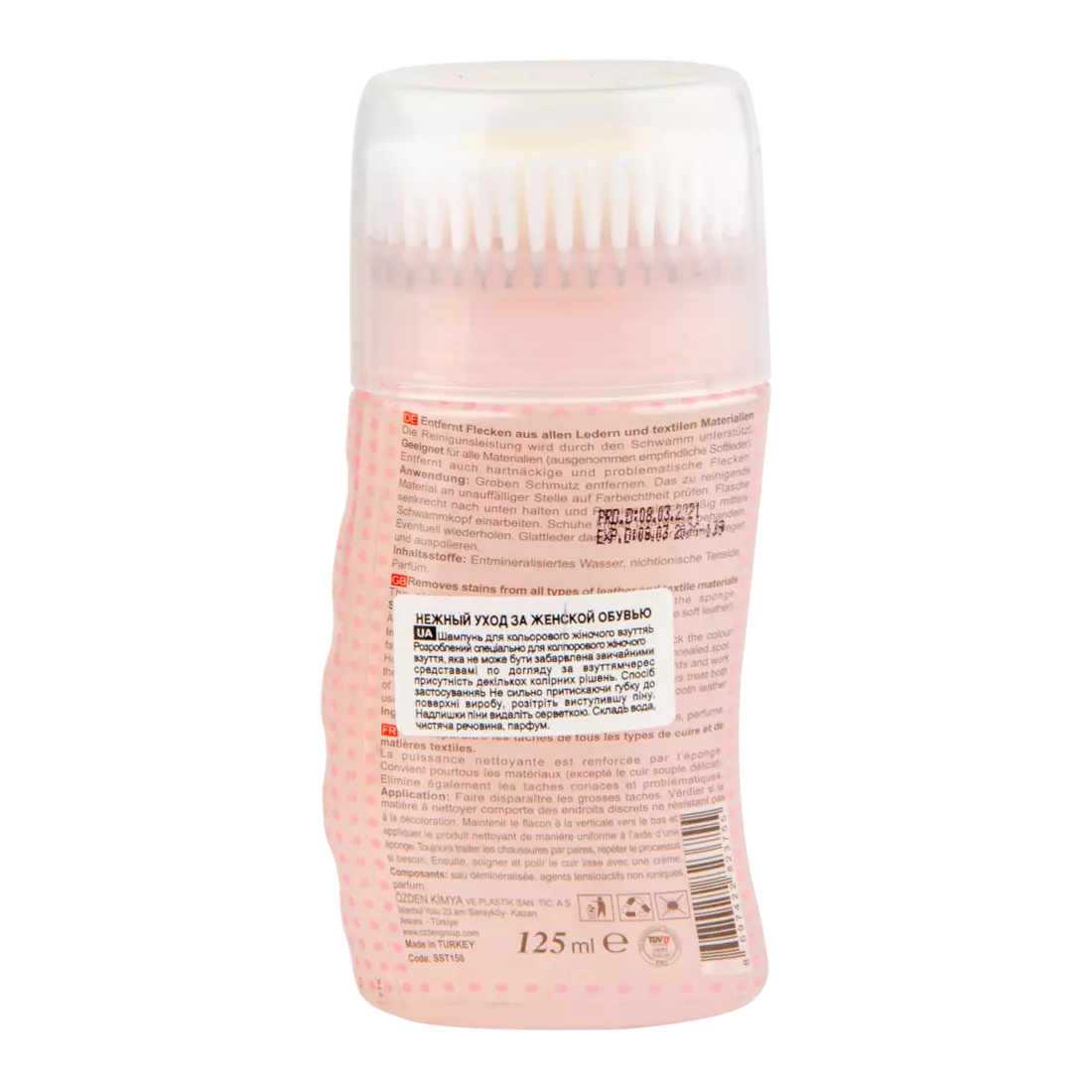 Ідеальний засіб для кольорового взуття, сумок та всіх видів шкіряних виробів, які тяжко чистити за допомогою інших засобів. Незалежно від кольорової гами, взуття та речі виглядають неначе в перший день покупки. Завдяки унікальній формулі шампунь виводить будь-які плями. Не пошкодивши стан шкіри, дбайливо та ніжно очищає бруд та розводи за допомогою спеціальної щітки. Під час очищення та після завдяки якісній есенції у складі надає речам приємного запаху.
