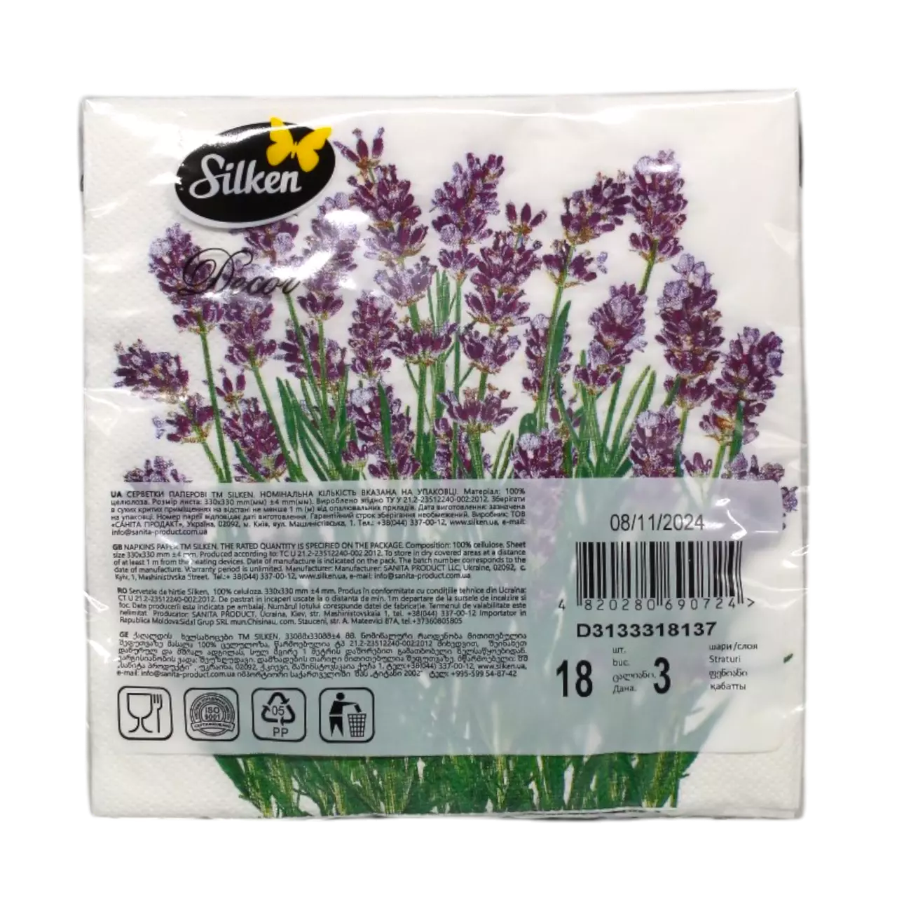 Silken Серветки паперові "Лаванда" (33x33 см, 3 шари, 18 шт) — це