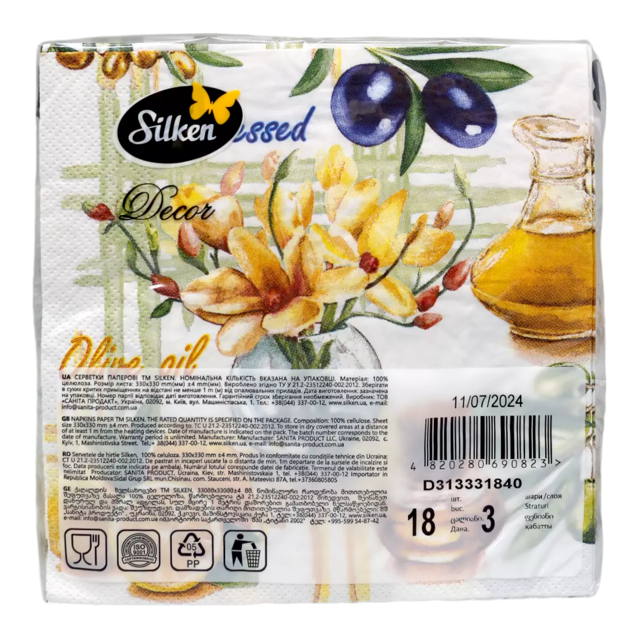 Silken Серветки паперові "Оливки з рамкою" 33*33 см 3 шари 18 шт