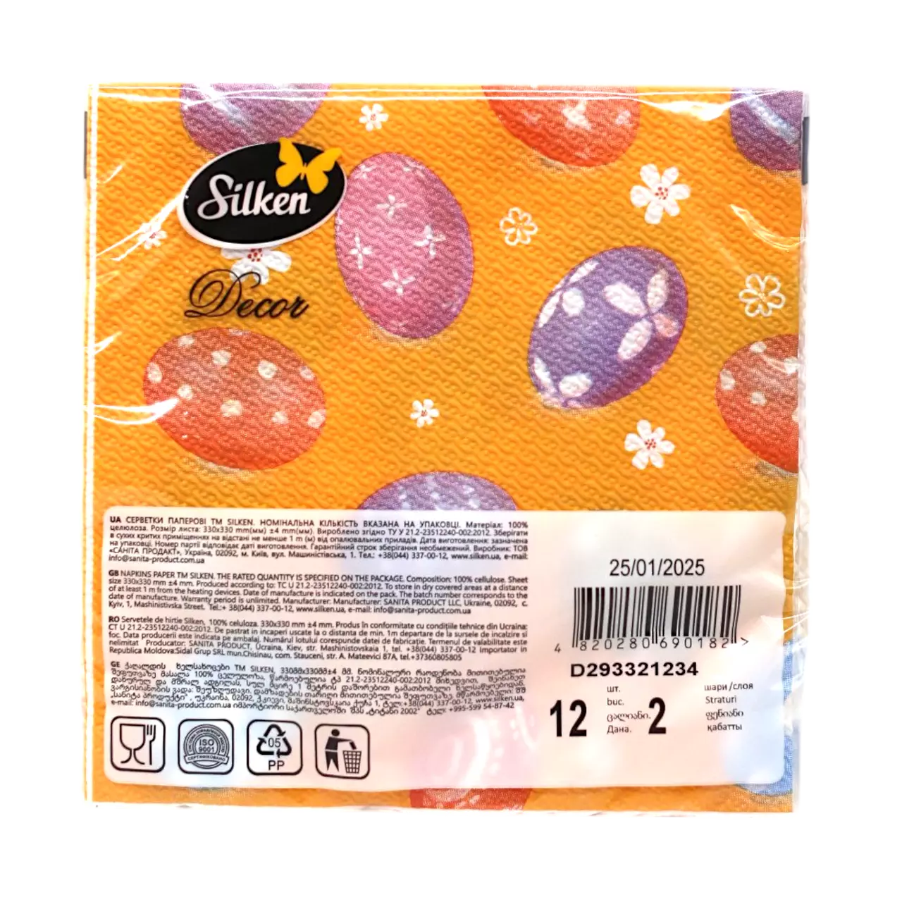 Silken Серветки паперові пасхальні "Сонячний Великдень мікс" 33*33 см 2 шари 12 шт