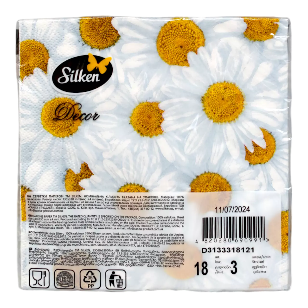 Silken Серветки паперові "Ромашки" 33*33 см 3 шари 18 шт