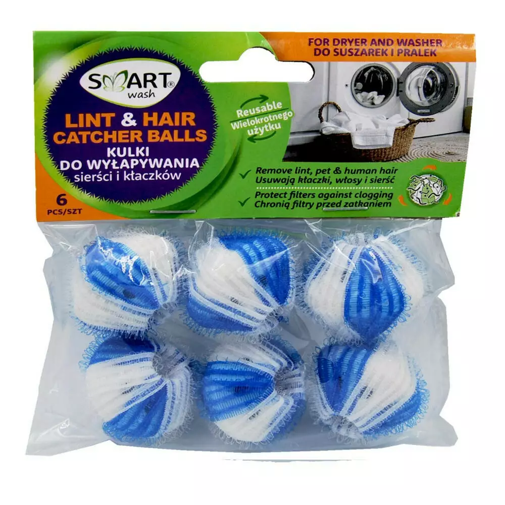 Smart Wash Кульки для прання для збору ворсу та волосся 6 шт - це просте та ефективне рішення для підтримання чистоти вашого одягу і пральної машини.