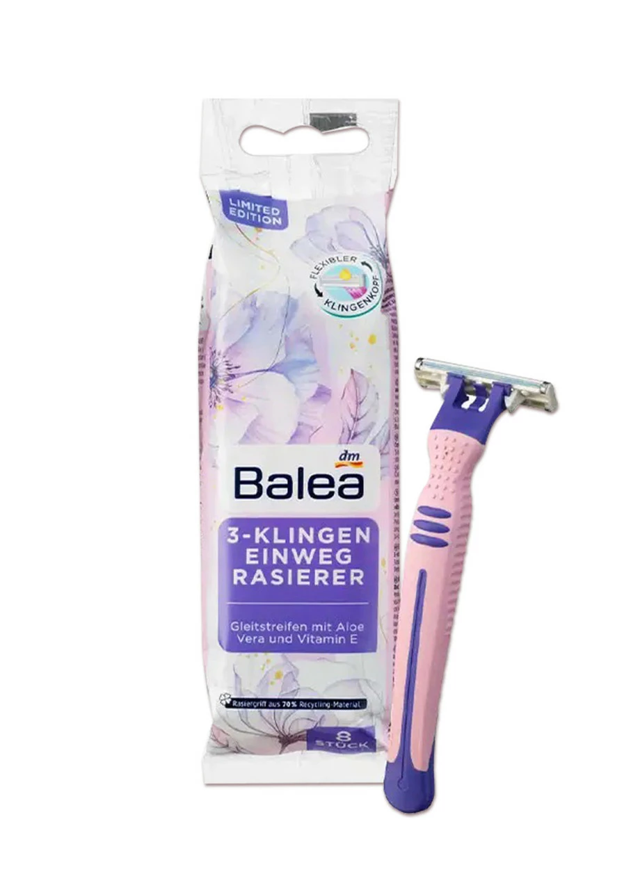 Щоб перетворити процес перетворення тіла гладкістю на справжню насолоду - зверніть увагу на жіночі одноразові бритви від бренду Balea. Практичні пристосування, оснащені двома гострими лезами, забезпечують досконале усунення навіть найкоротших, але товстих волосків, одночасно доглядаючи шкіру.