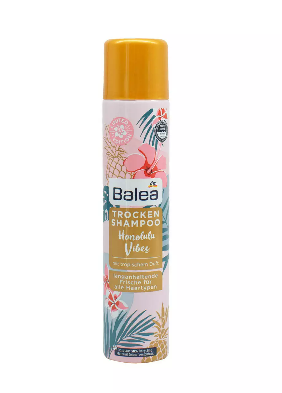 Знову багато справ і не вистачило часу помити голову? З сухим шампунем Balea Honolulu Vibes вас більше не турбуватиме жирне волосся. Завдяки спеціальній формулі ваше волосся виглядає свіжовимитим одразу після нанесення. Чудо-засіб дає вам миттєвий приголомшливий об'єм та випромінює тропічний аромат. Насолоджуйтесь відчуттям оновленого волосся та доглянутого вигляду.