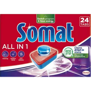- Очищення: Таблетки Somat "Все в одному" забезпечують досконалу чистоту посуду, ефективно видаляючи плями та забруднення.