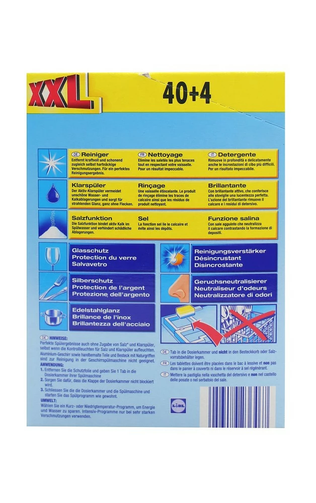 Зніміть захисну плівку і покладіть таблетку в камеру завантаження посудомийної машини. Запустіть програму миття у звичайному режимі. Не використовувати для очищення у посудомийній машині алюмінієві вироби. Посуд із деталями ручного розпису та столові прилади з натуральними ручками потрібно мити вручну.