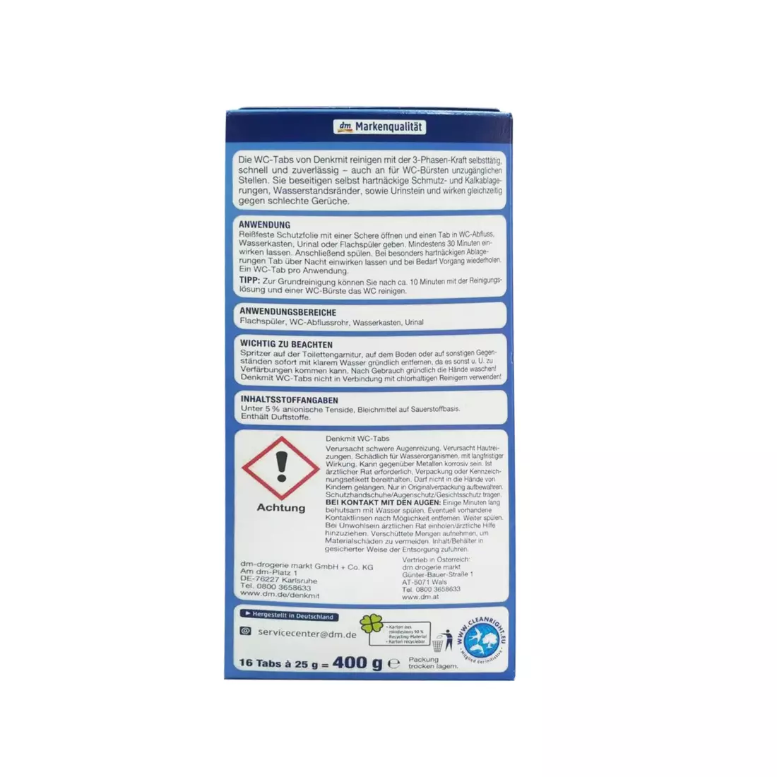 Таблетки для унітазу Denkmit WC Reiniger Tabs для чищення навіть у важкодоступних місцях бачка, унітазу, біде, пісуара.