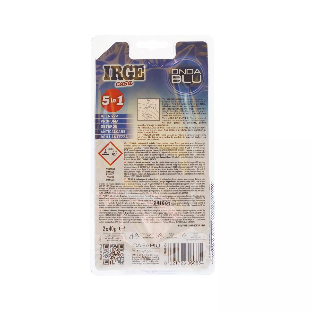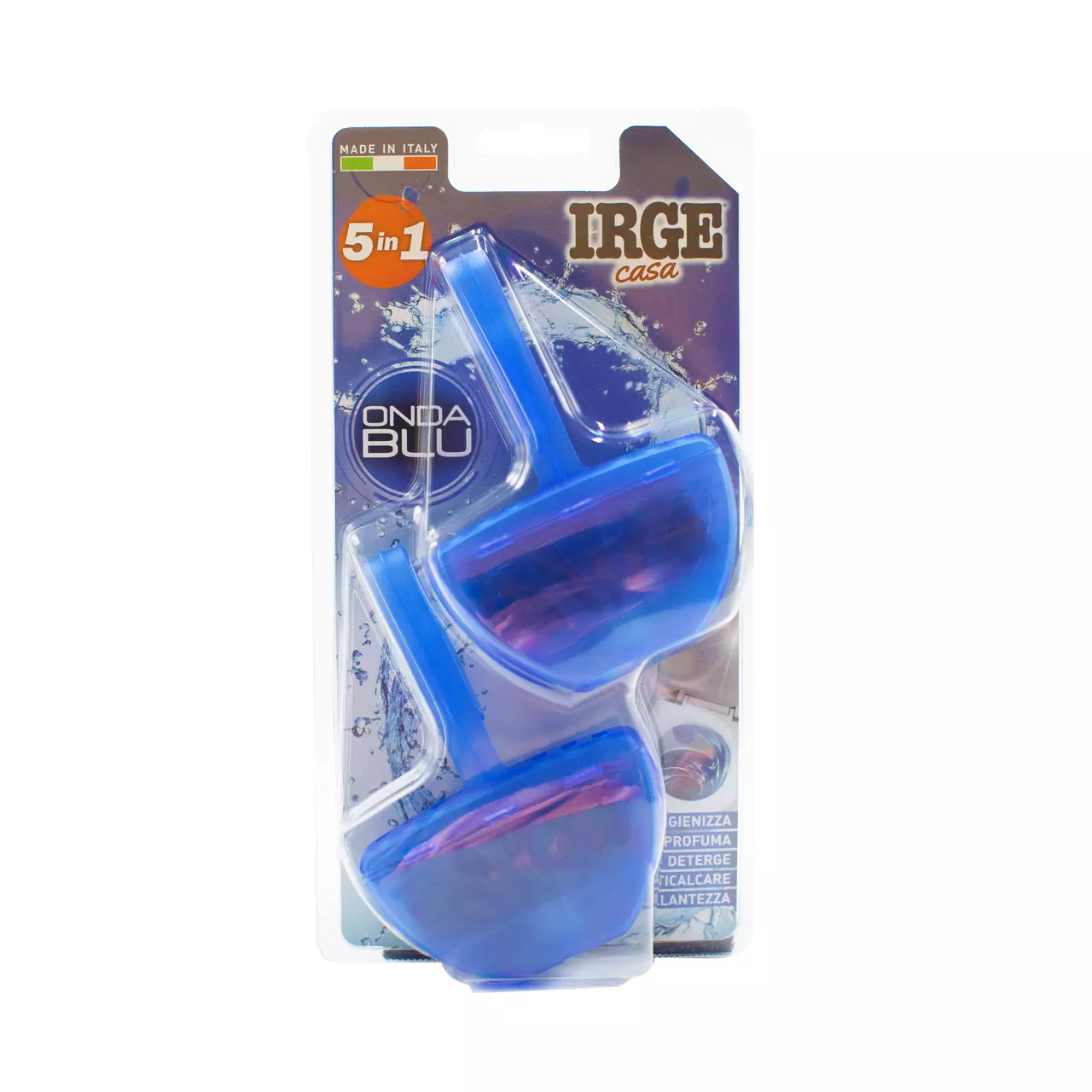 Туалетний блок Irge Fresh Blue 5в1 пропонує п'ять функцій в одному засобі, забезпечуючи всебічне очищення, дезінфекцію, ароматизацію та гігієну для вашого унітазу.