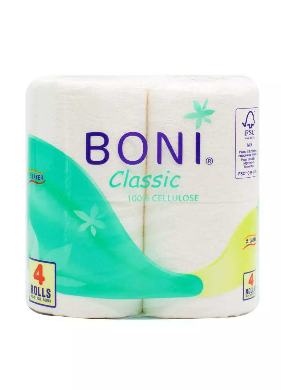 Двошаровий туалетний папір Boni (Боні) гарантує відчуття свіжості та чистоти.