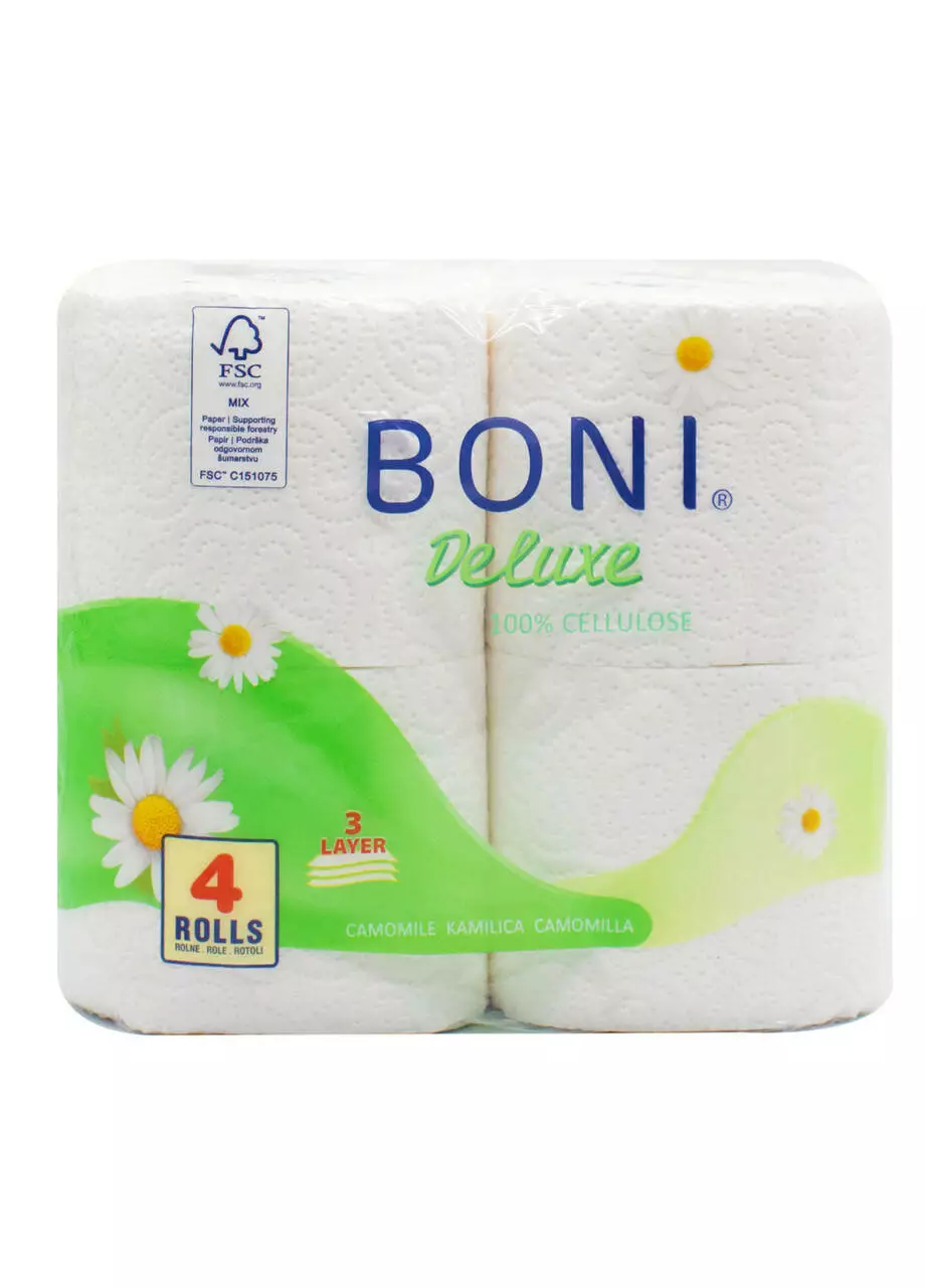 Туалетний папір BONI DeLuxe Ромашка тришаровий 4 рулони