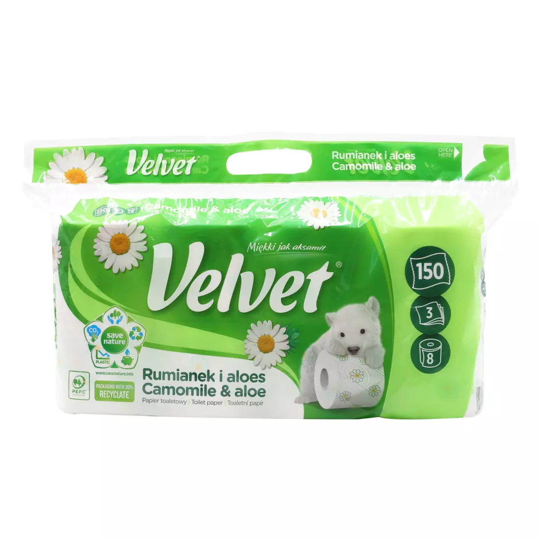 Туалетний папір Velvet Camomile&Aloe тришаровий 150 відривів 8 рулонів