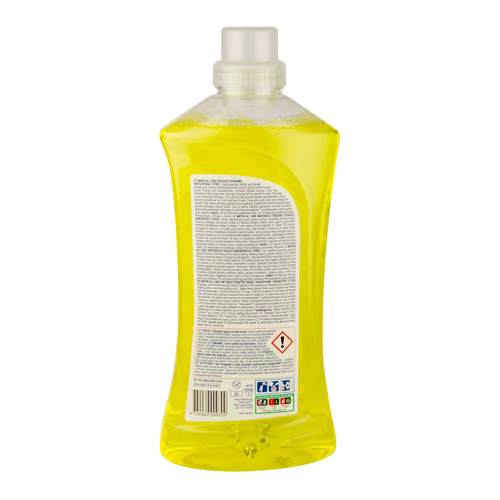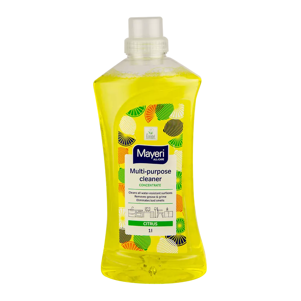 Багатоцільовий концентрат з ароматом лимону. Підходить для очищення всіх водостійких поверхонь (дерева, мармуру, керамічних поверхонь, пофарбованих, покритих лаком, плитками, фаянсом, пластиком, лінолеумом). Ефективно видаляє жир, бруд і неприємні запахи.