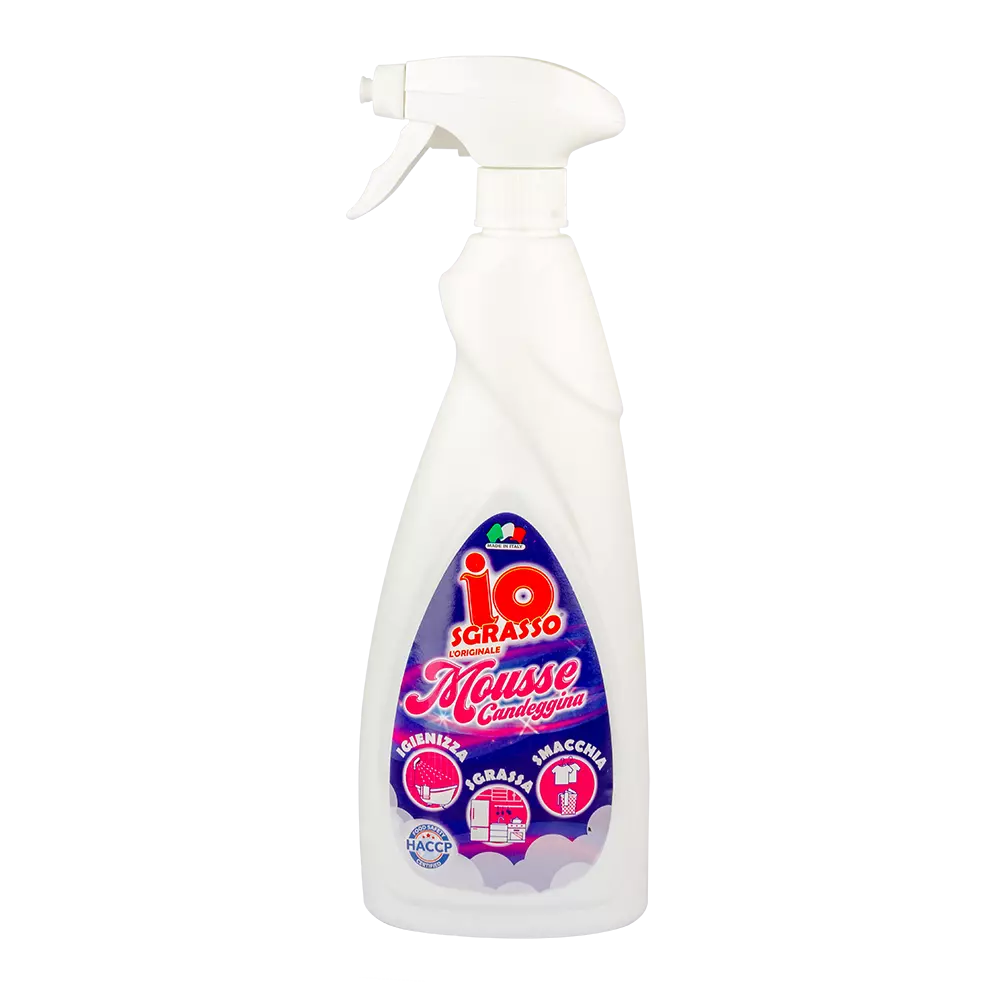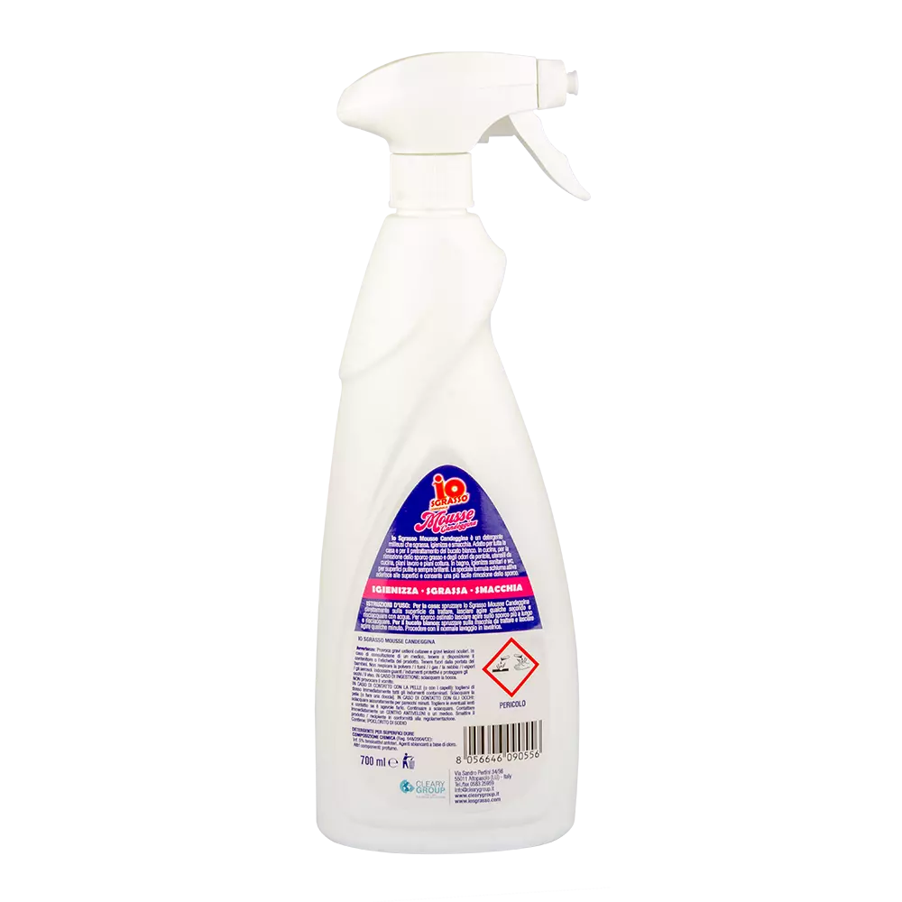 Універсальний спрей-мус Io Sgrasso підходить для чищення найрізноманітніших поверхонь. Його дія швидка і цілеспрямована: вона дезінфікує, знежирює та видаляє навіть стійкий бруд, не залишаючи слідів та розводів. Видаляє жир з плит, каструль, посуду для духовки та всього кухонного приладдя, видаляє навіть найстійкіші плями з білої білизни. Його текстура мусу робить його справді унікальним!