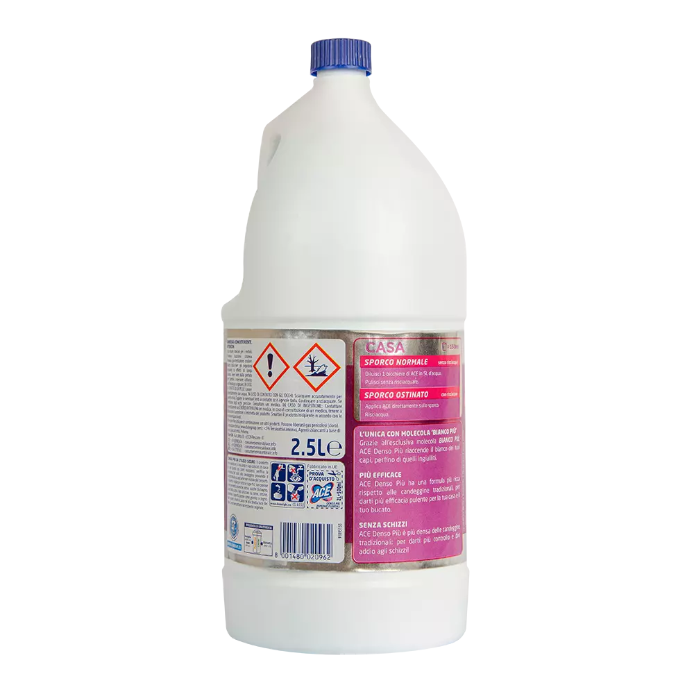 Завдяки ексклюзивній молекулі BIANCO PIU відновлює ваш білий одяг, навіть пожовклий. Його формула щільніша і насиченіша від традиційних відбілювачів була розроблена для гарантування більшої ефективності очищення дому та білої білизни.