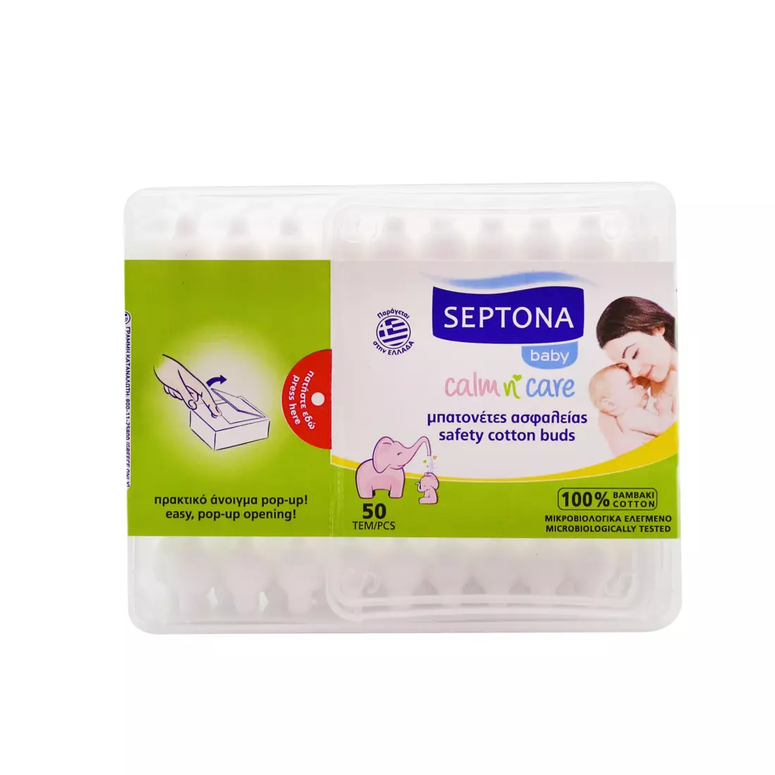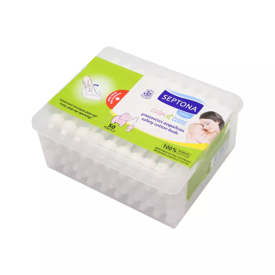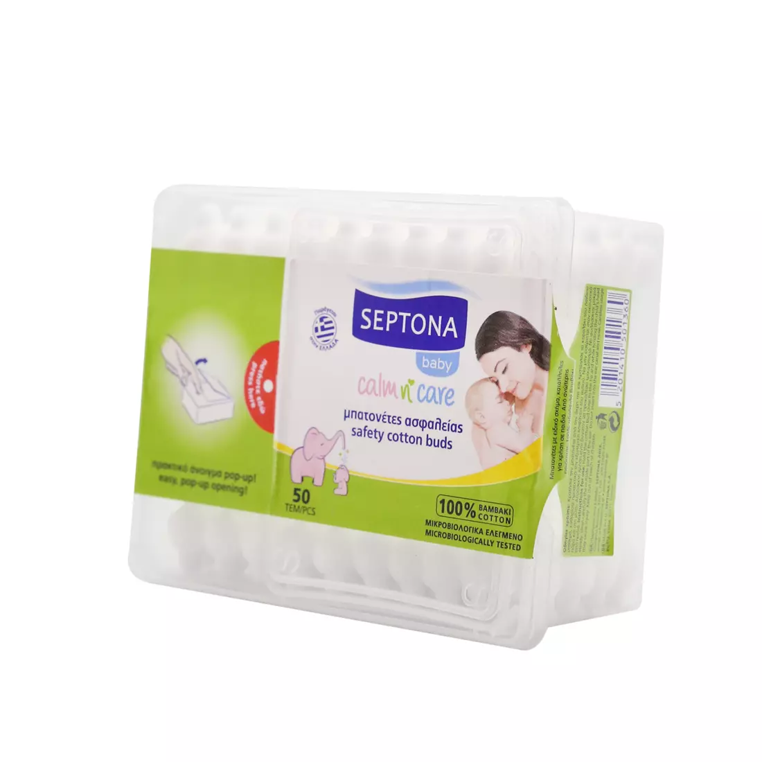 Обмежувач на ватній голівці дозволяє контролювати безпечну глибину проникнення. Для зручності зберігання, комфорту використання та захисту від пилу палички упаковані у пластиковий бокс. З ватяними паличками Septona догляд за дитиною стане значно простішим та швидшим, чому неодмінно зрадіє кожна мама.