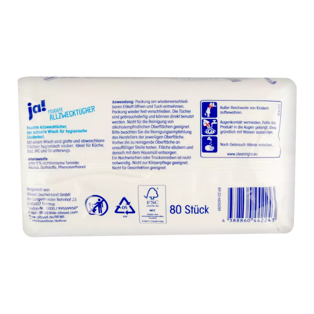 Вологі серветки для прибирання Ja! Pure Frische 80 шт