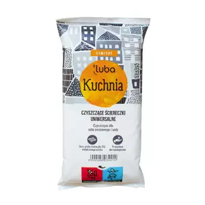 Кухонні ганчірки LUBA змочені повністю натуральною формулою фруктового оцту та соди, яка ефективно очищає кухонні стільниці, кухонну мийку, а також справляється з дуже стійкими плямами, які виникають під час повсякденної роботи на кожній кухні.