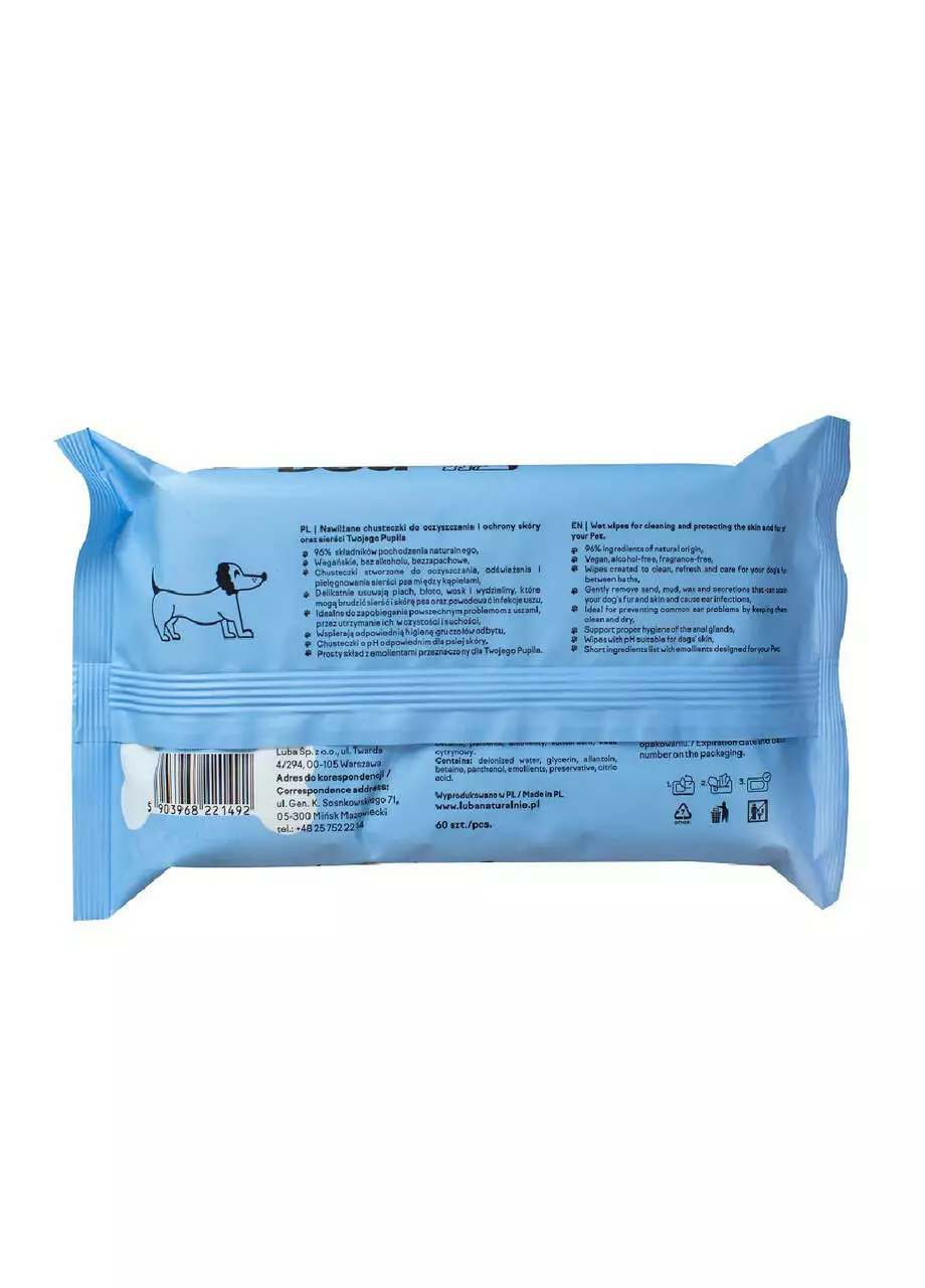 Вологі серветки Luba для собак (для шерсті, шкіри, лап) 60 шт