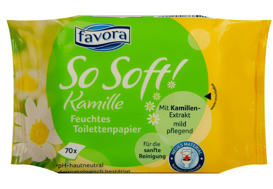 Суперм'який вологий туалетний папір з екстрактом ромашки. Не