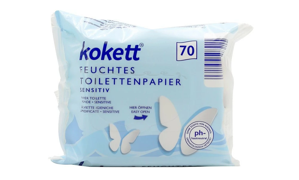 Вологий туалетний папір Kokett Sensitiv підходить для використання